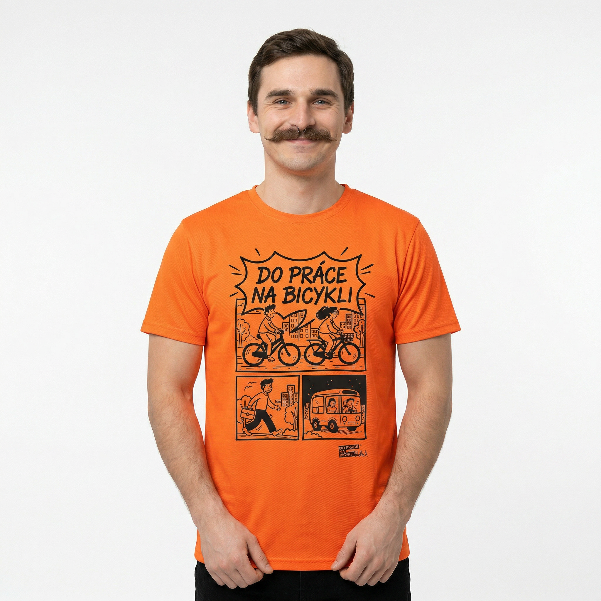 Limitovaná edícia reflexného funkčného trička s motívom kampane Do práce na bicykli, ktorá nie je obmedzená len na aktuálny ročník. Vďaka výraznej oranžovej farbe na ceste (nielen) do práce doslova zažiarite! :)